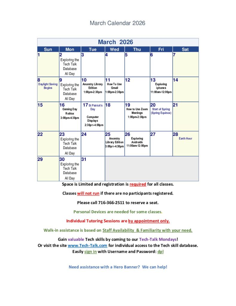 Technology Classes, Lab Events, & Help Sessions